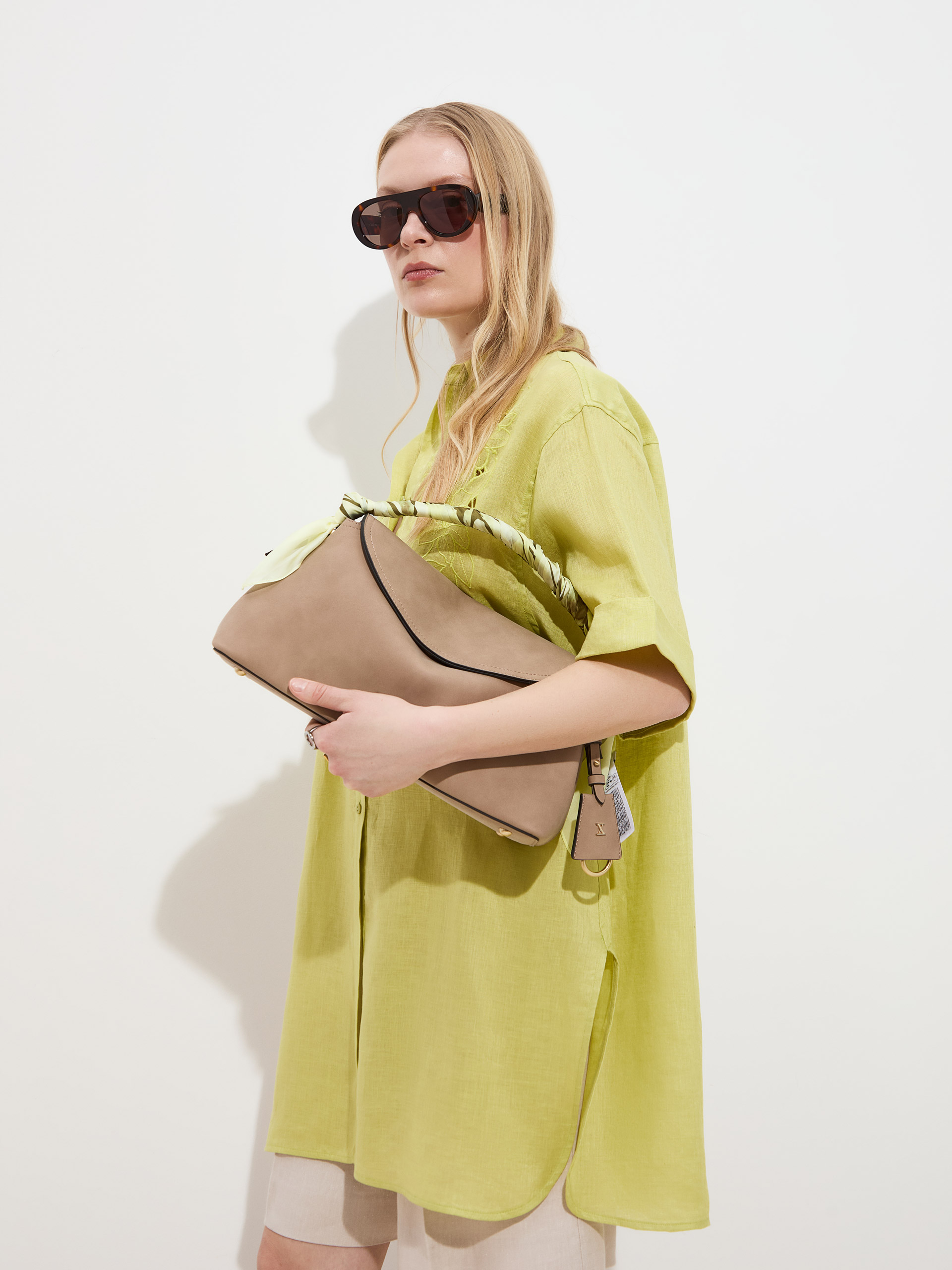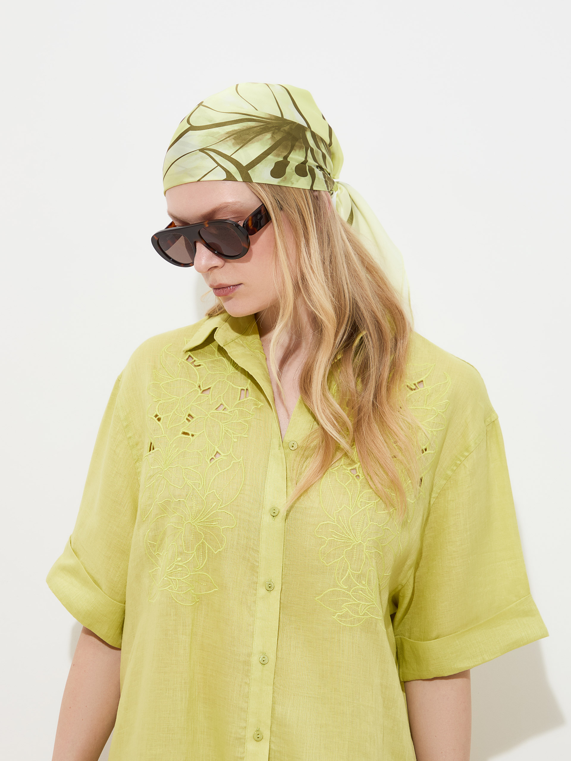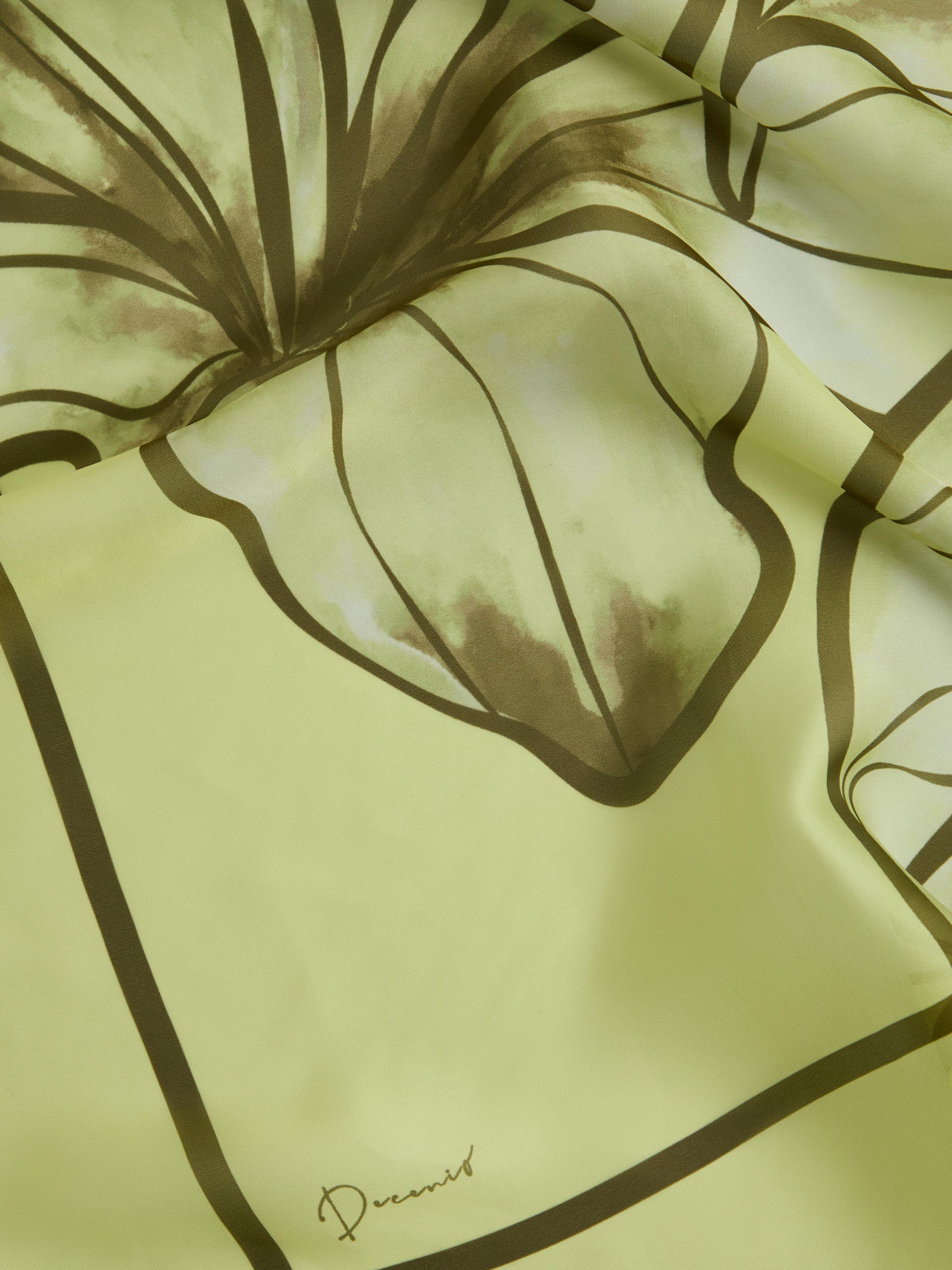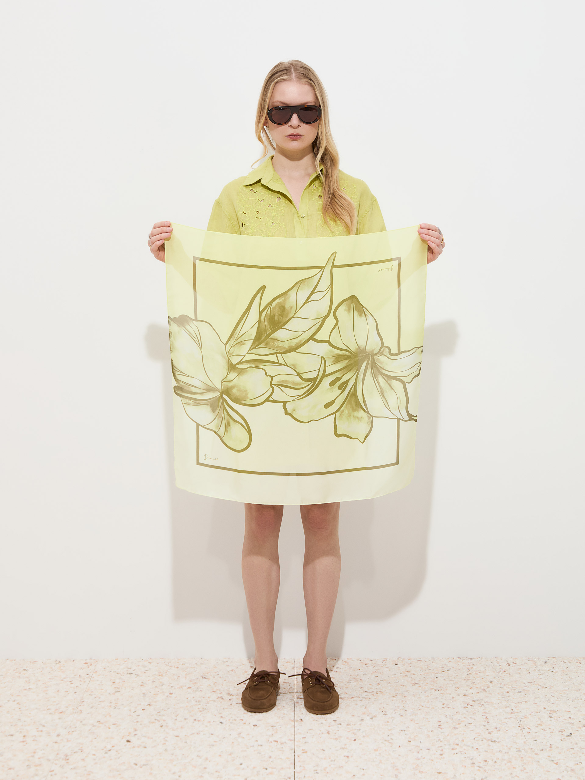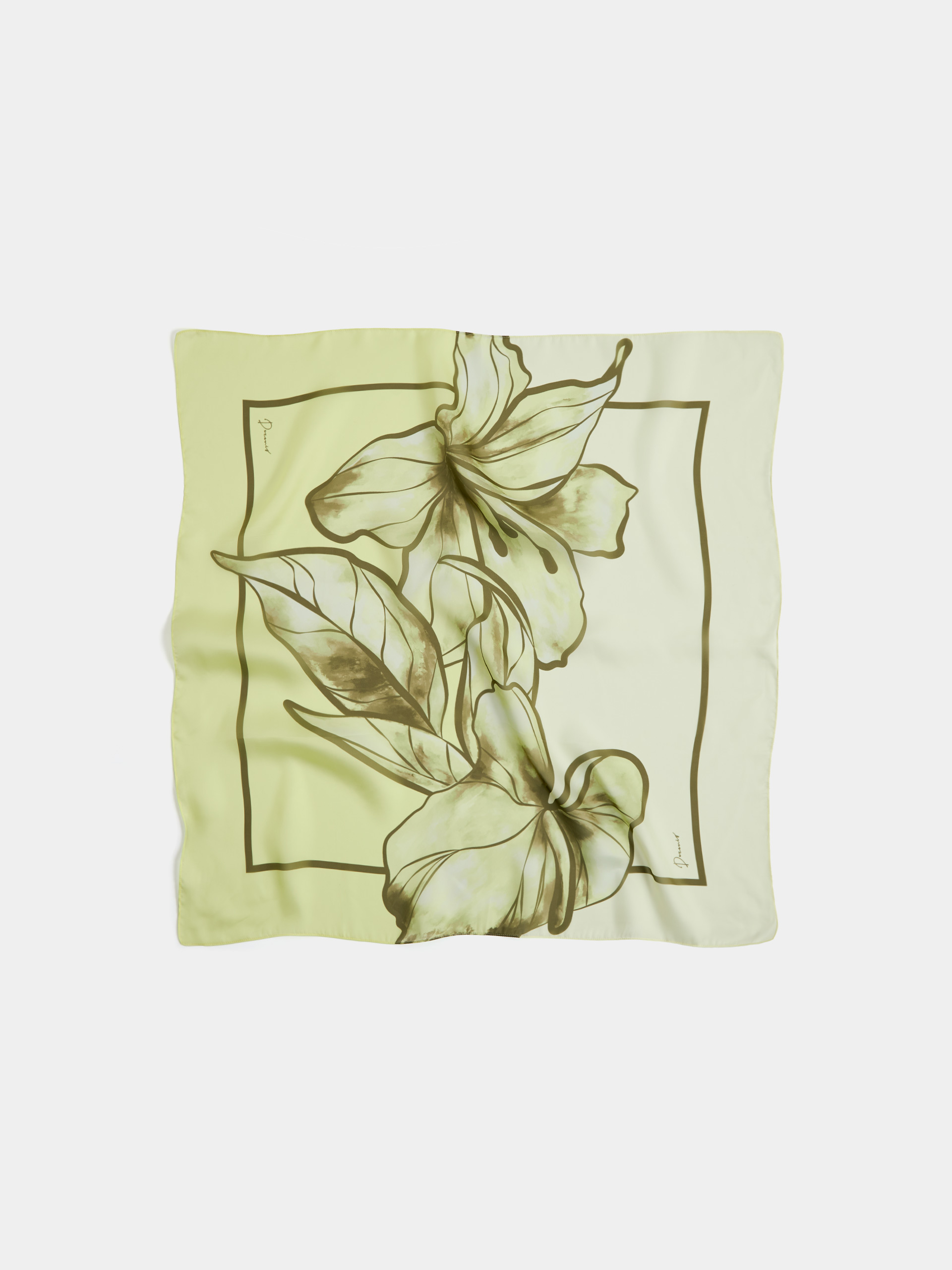 Lenço de formato quadrado com estampado floral, ideal para dar um toque leve e primaveril aos seus looks.