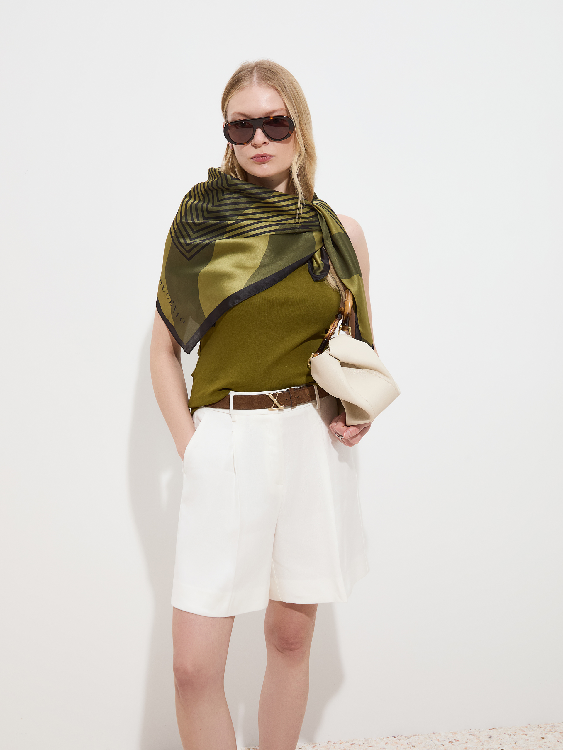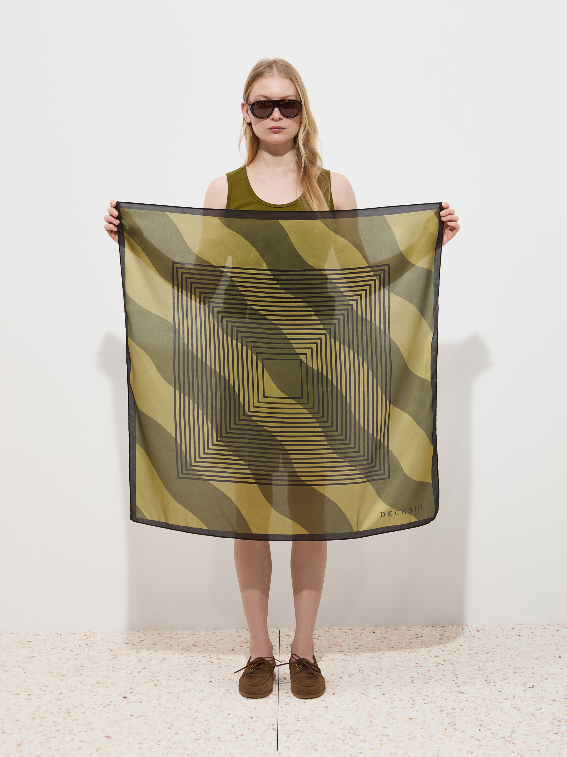 Adicione estilo e sofisticação ao seu look com este lenço quadrado de estampado exclusivo. Perfeito para usar ao pescoço, no cabelo ou como acessório de mala, elevando qualquer visual.