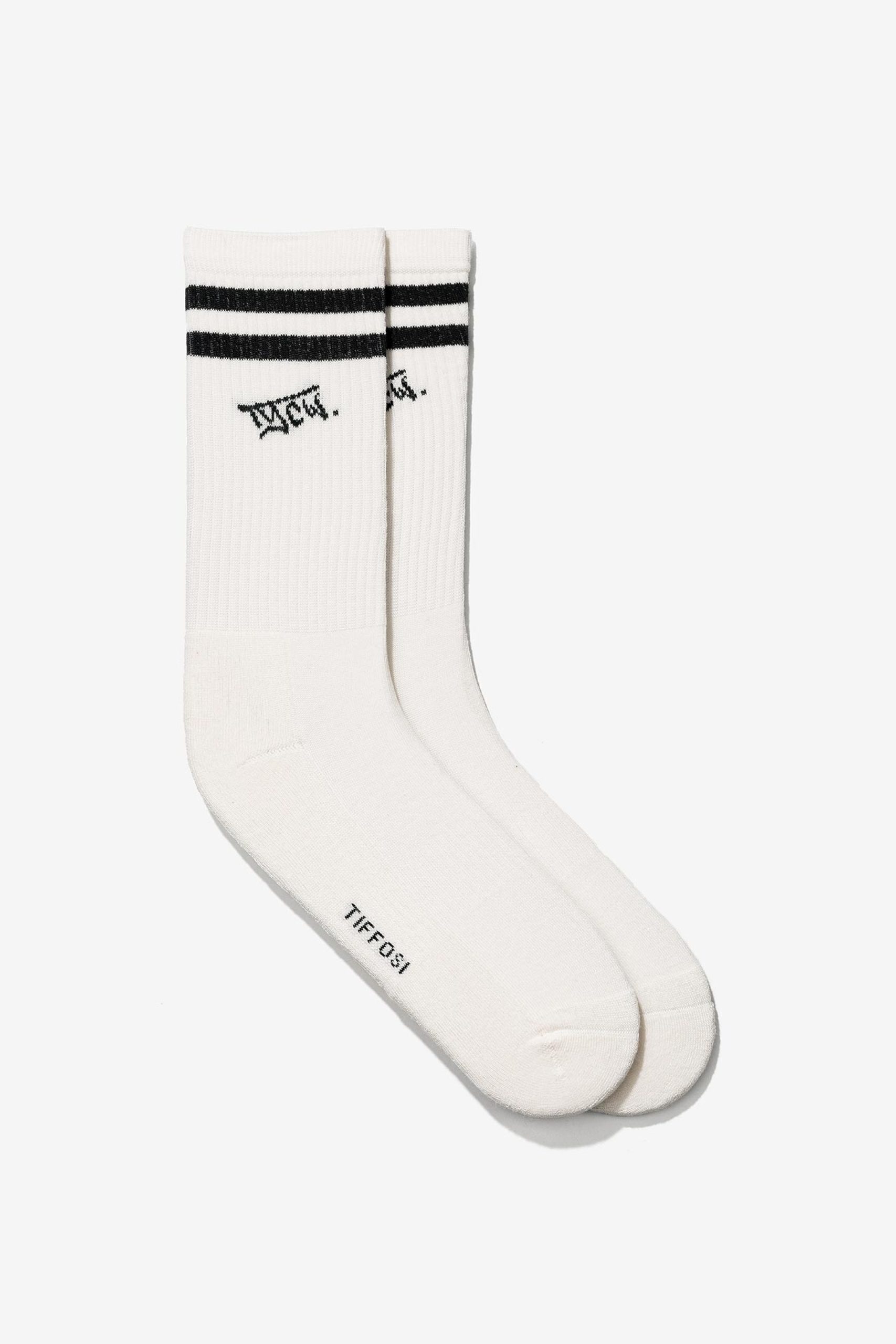 Meias de cano alto com logo.