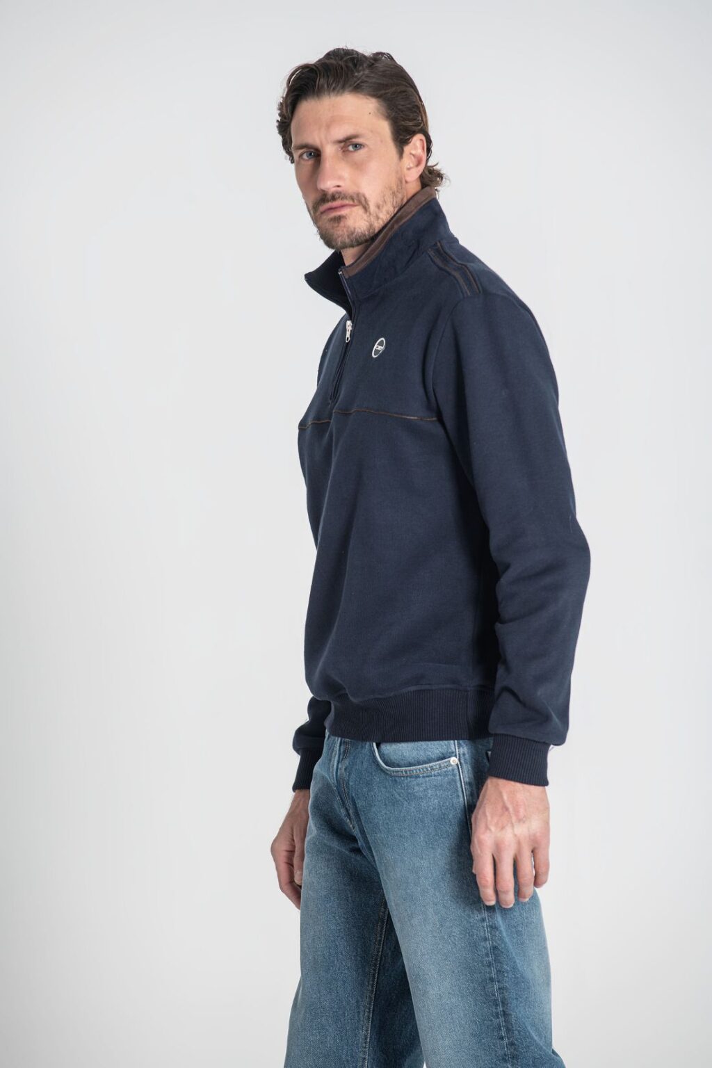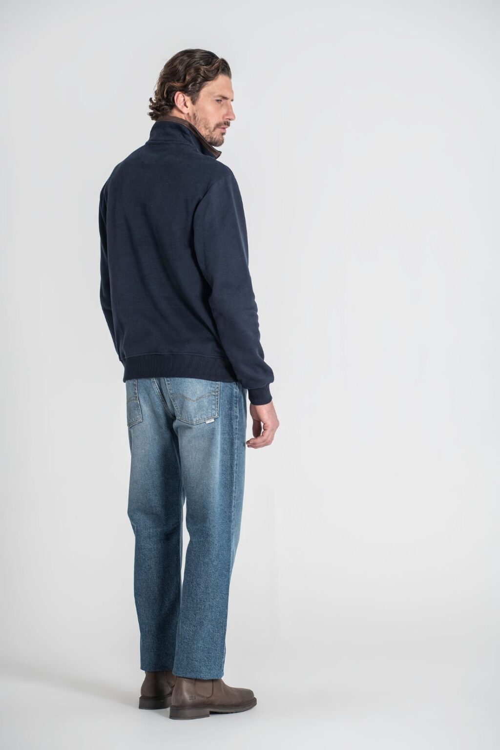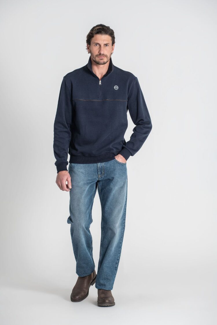 Polo com gola e fecho, acabamento de punhos canelados.